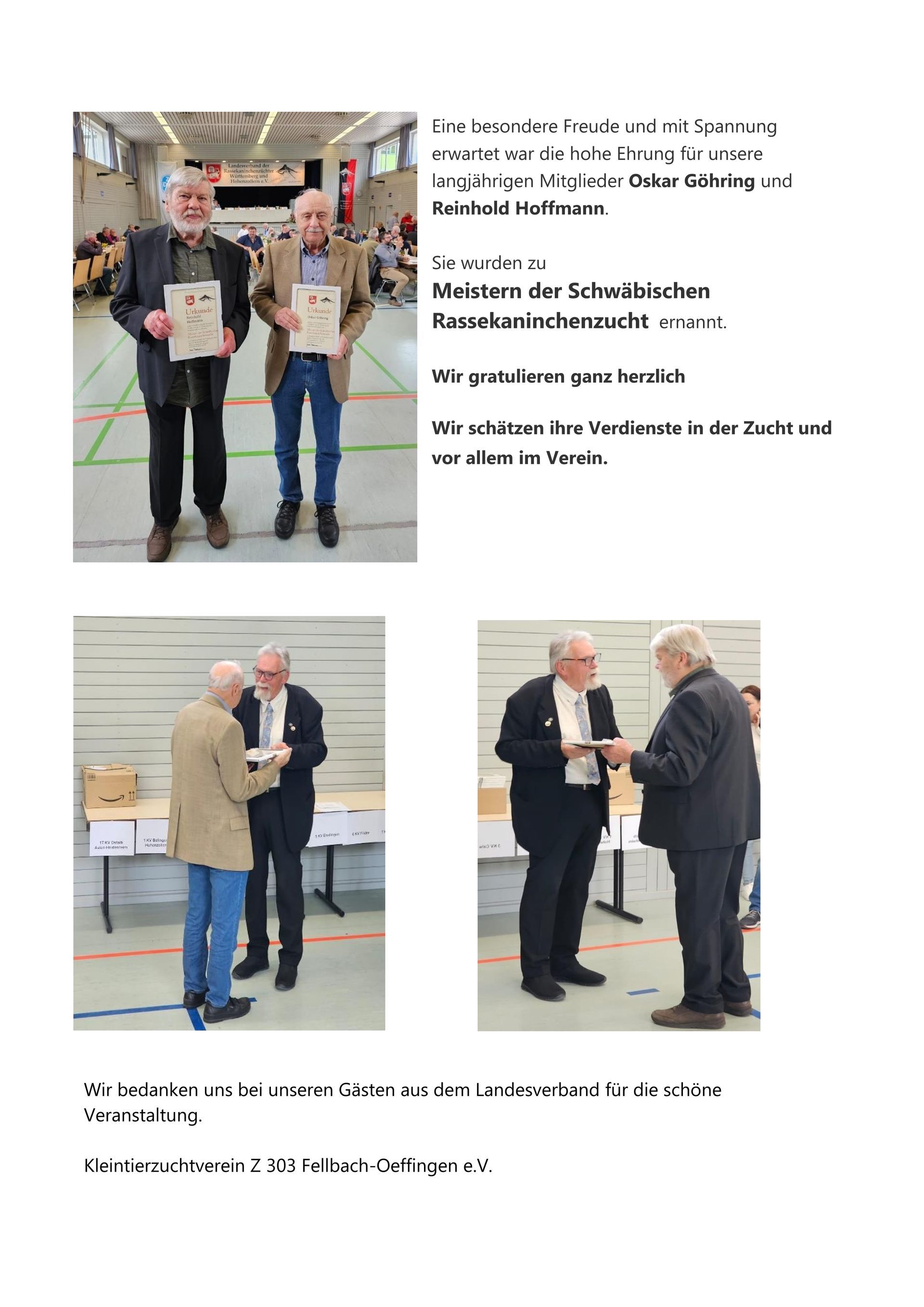 Damit ist der Kleintierzuchtverein Z 303 Fellbach-Oeffingen e.V. nicht nur gut aufgestellt, sondern geht weiter den Weg auch auf die Jugend zu setzen.